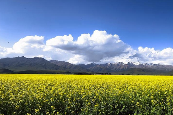当南方的油菜花早已凋谢,青海门源的油菜花却花开正艳。由于处于海拔较高的地区,门源的油菜花生长周期相对较长,花开得更加繁茂。当百里油菜花铺展成海,金浪翻涌间,与蓝天白云、祁连雪峰相映成画,那种辽阔与壮美,是独属于门源的限定美好。